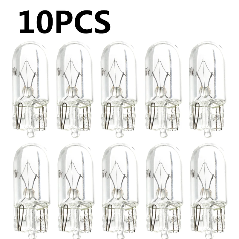 10 X White T10 W5W 501 194 Clear Signal Lamp Glass 12V 5W Warm White W2.1x9.5d Single Filament Car Bulb Auto Light