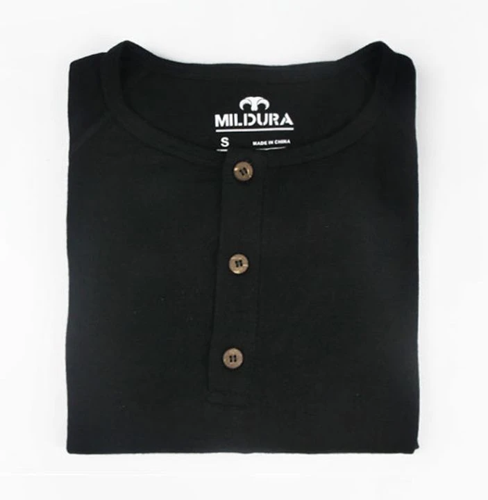 100% Merino Wool T Shirt Men Slim Fit Henley Shirt Men Merino Base Layer Top 160G Wicking Breathable Anti-Odor Asian Size