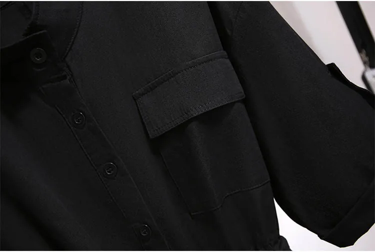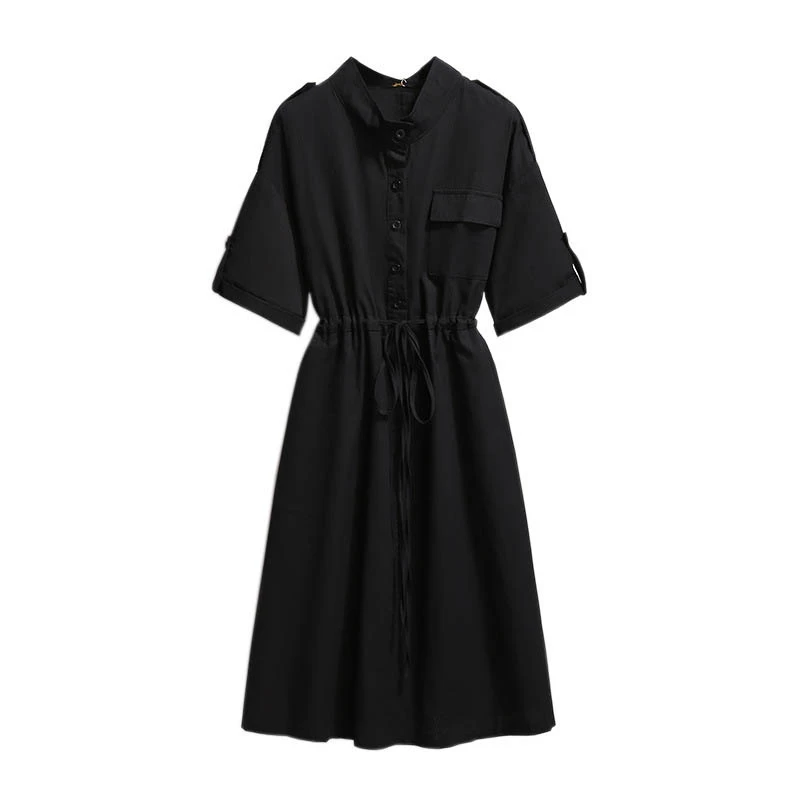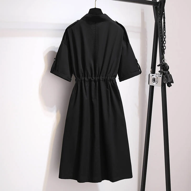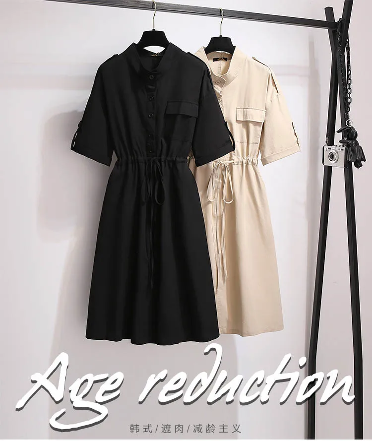 150Kg Plus Size Women's Summer Loose Cotton Shirt Dress Bust 152cm 5XL 6XL 7XL 8XL 9XL Temperament Waist Dress Black Khaki