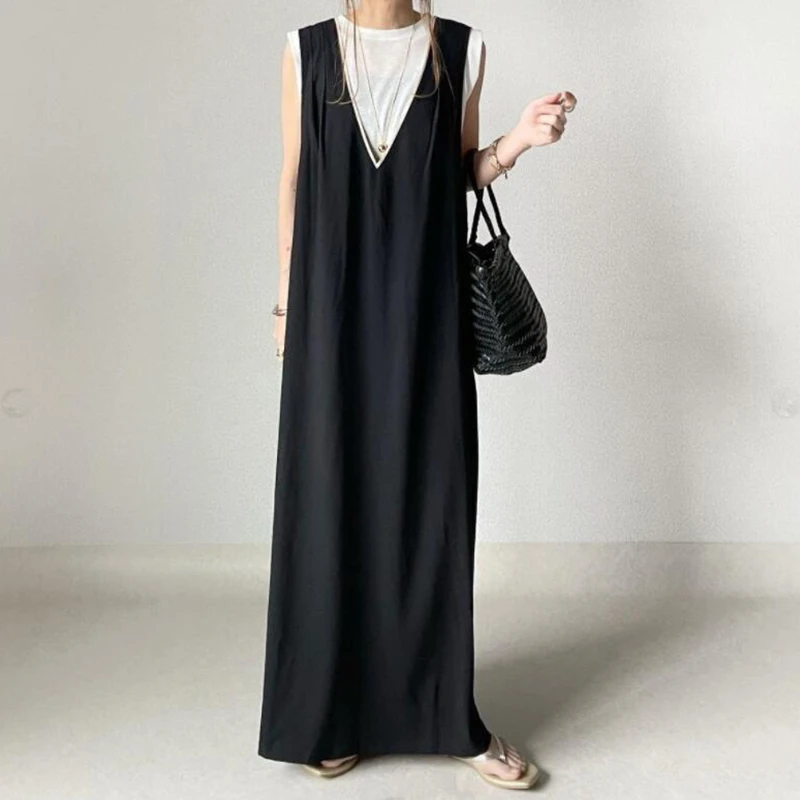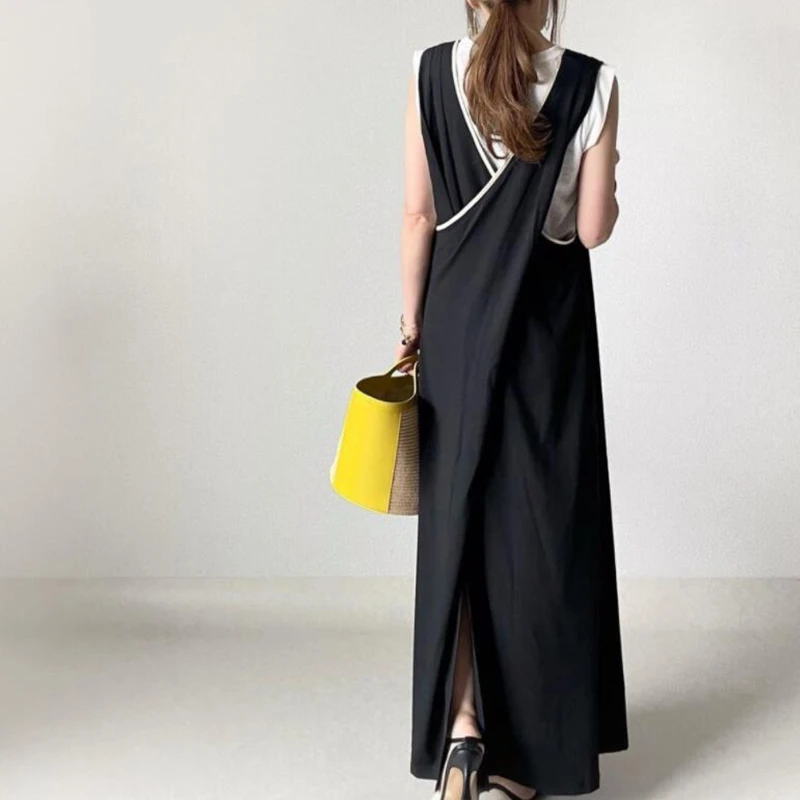 2022 Summer New Fresh Sweet Japan Korean Style Solid Deep V Cross Back Sleeveless Women Long Dress Vestidos De Mujer Harajuku