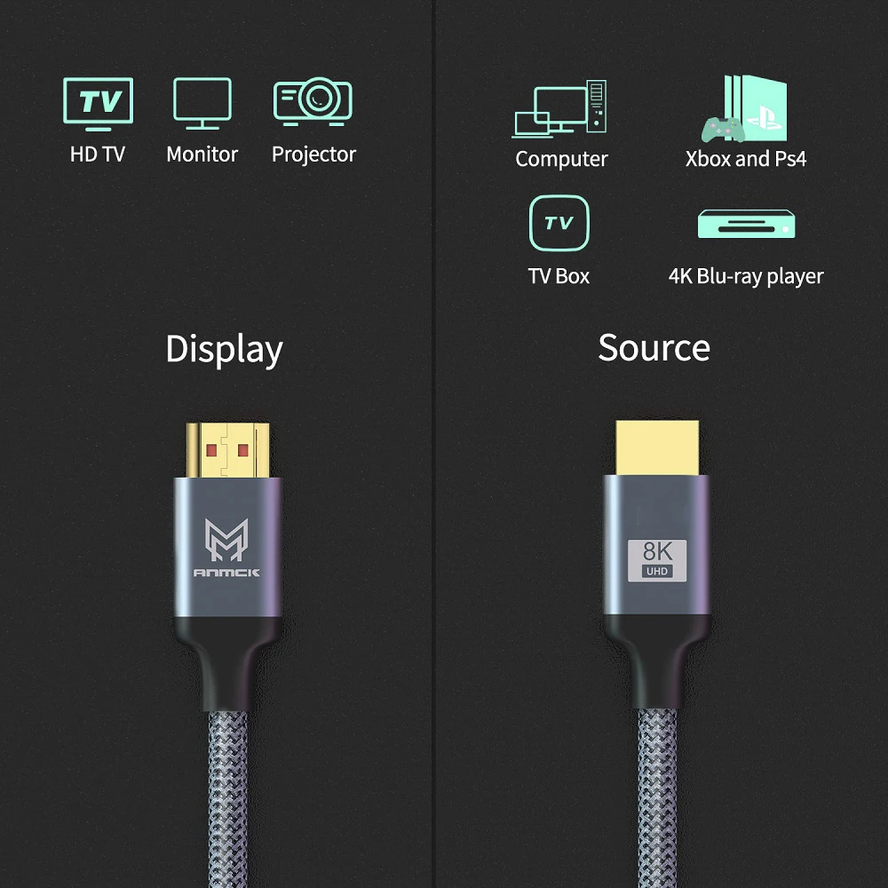 Anmck 8K HDMI-compatible Cable 2.1V Ultra HD Video Audio Wire For TV Box PS4 PS5 Projector Laptops Digital Cord Cables 4K