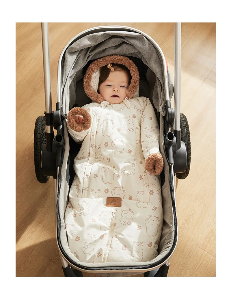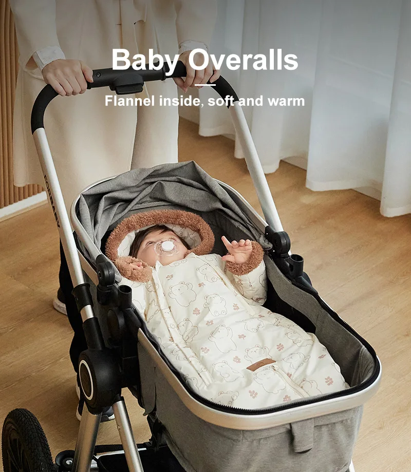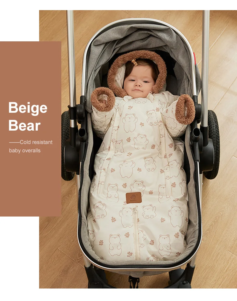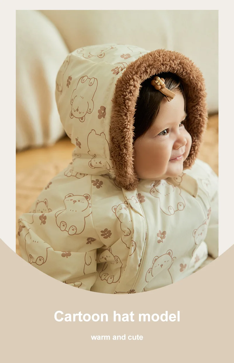 Baby Overalls Winter Warm Baby Clothes Outdoor Waterproof Thick Hooded Jacket Cute Cartoon Bear Boys Girls Toddler Coat 0-12M