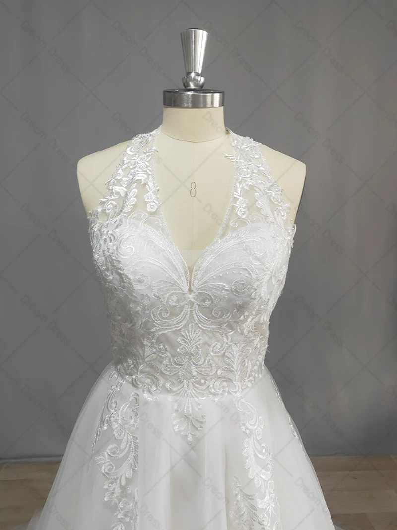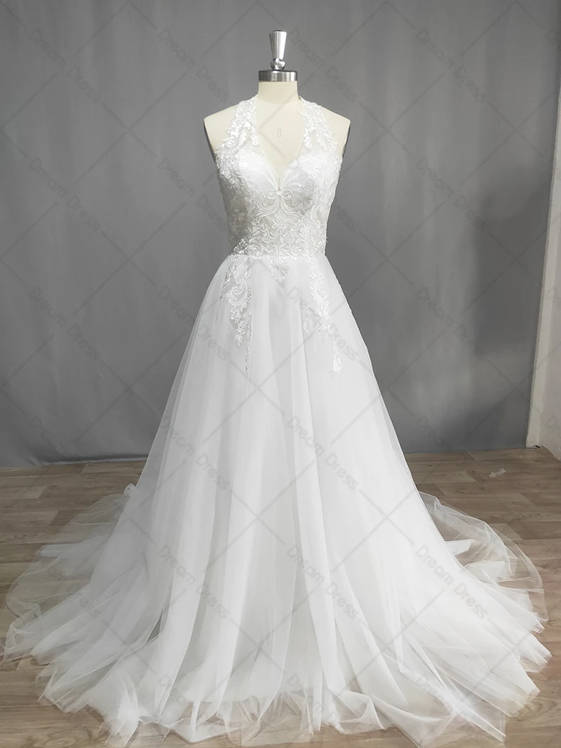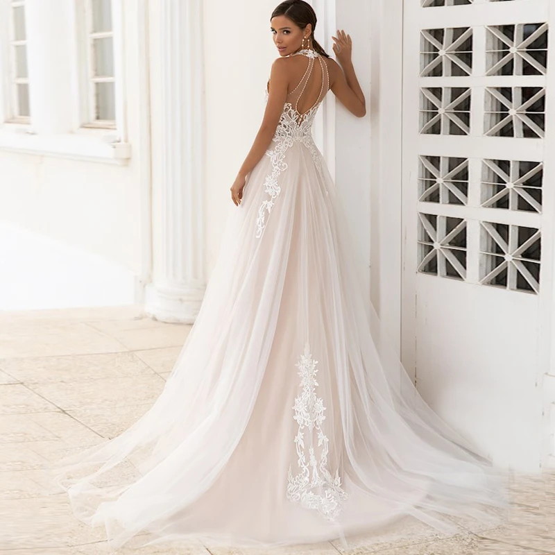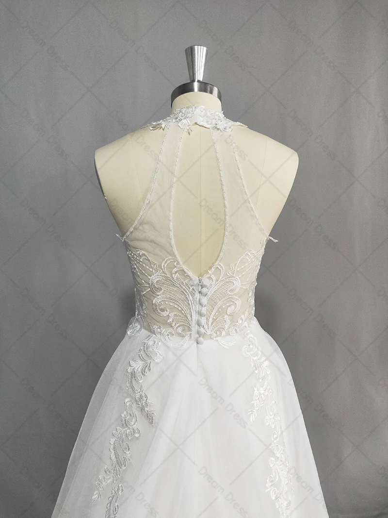DREAM Beach Sleeveless Wedding Dresses Bohemian Lace Halter Appliques Tulle A-line Bride Gown Vestido de Novia 2022 New