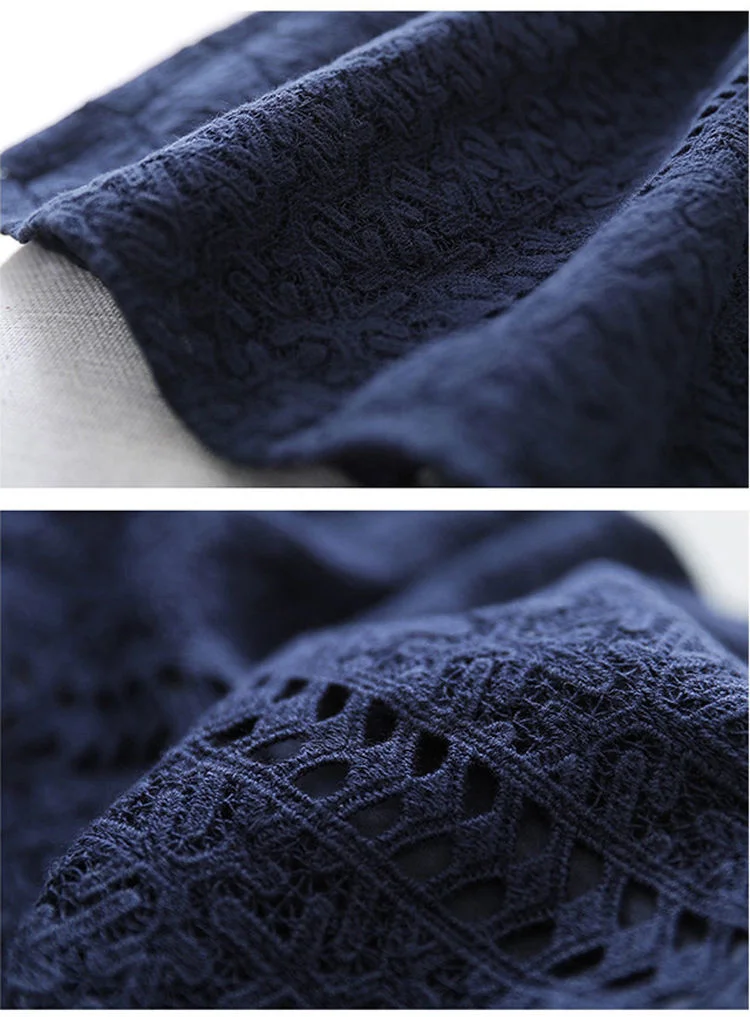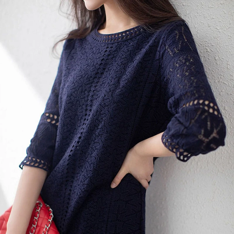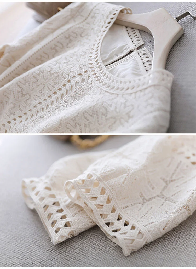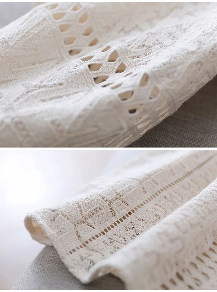 Elegant Blue Dress Lace White Dresses Slim Hollow Out Women Chic Vestidos A-line Skirt Robe Holiday Party Vintage Office Ladies