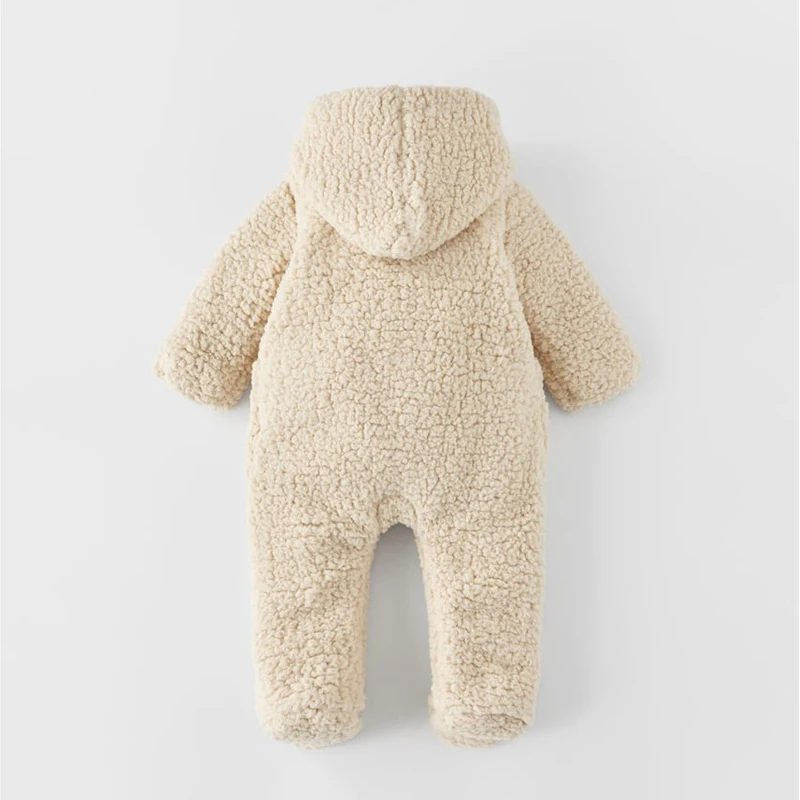 Fleece Baby Hooded Overall Winter Warm Baby Boy Girl Clothes Long Sleeve Newborn One-Piece Jumpsuit Patch Pockets Baby Outerwear