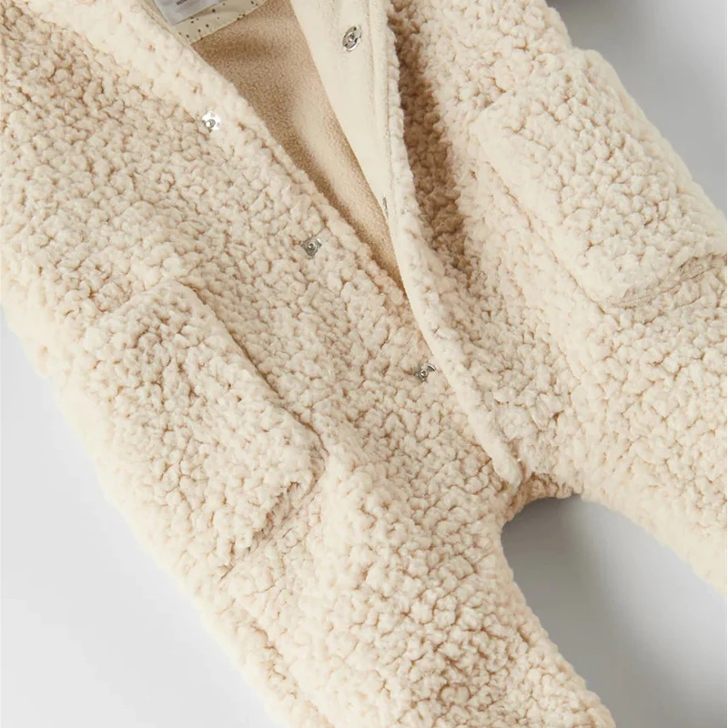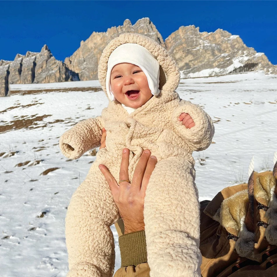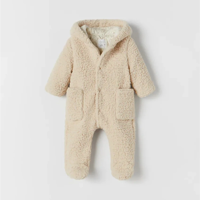 Fleece Baby Hooded Overall Winter Warm Baby Boy Girl Clothes Long Sleeve Newborn One-Piece Jumpsuit Patch Pockets Baby Outerwear