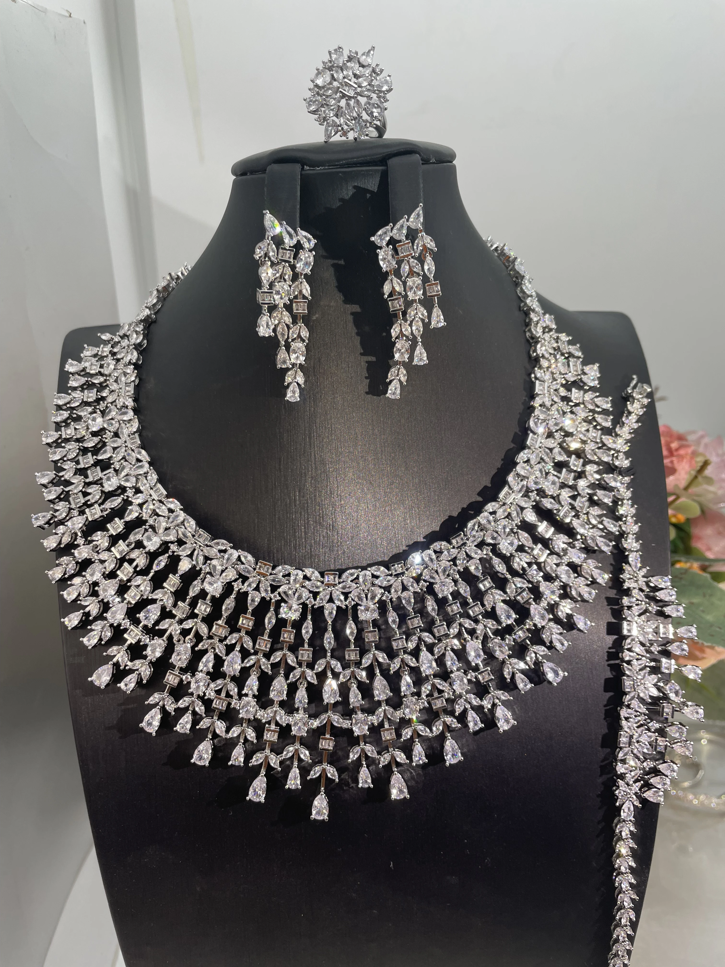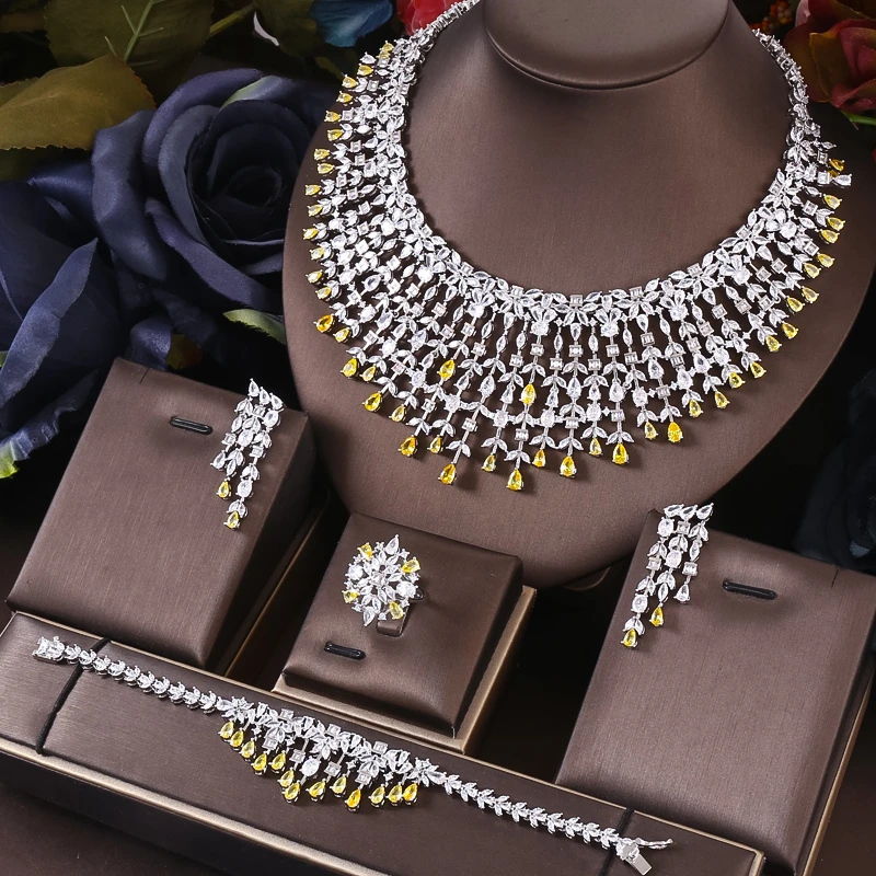 Janekelly4 pcs Bridal Zirconia Full Jewelry Sets For Women Party, Luxury Dubai Nigeria CZ Crystal Wedding Jewelry Sets