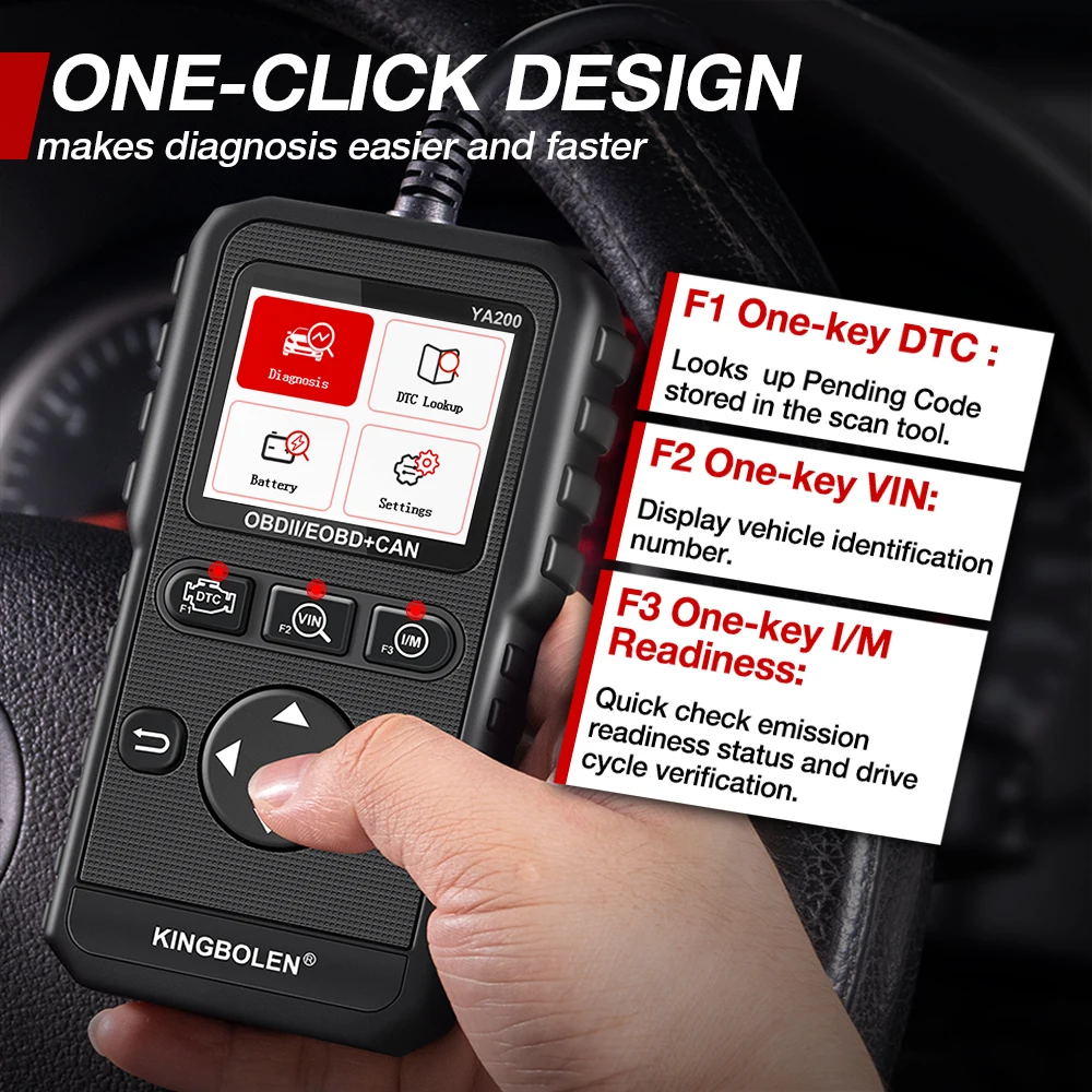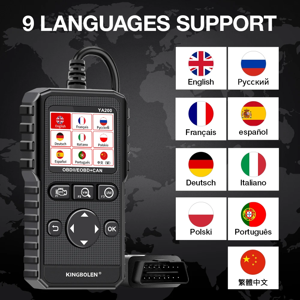 KINGBOLEN YA200 OBD2 Scanner Professional Auto Engine System Diagnostic Tool Lifetime Free Automotive DTC Lookup Code Reader