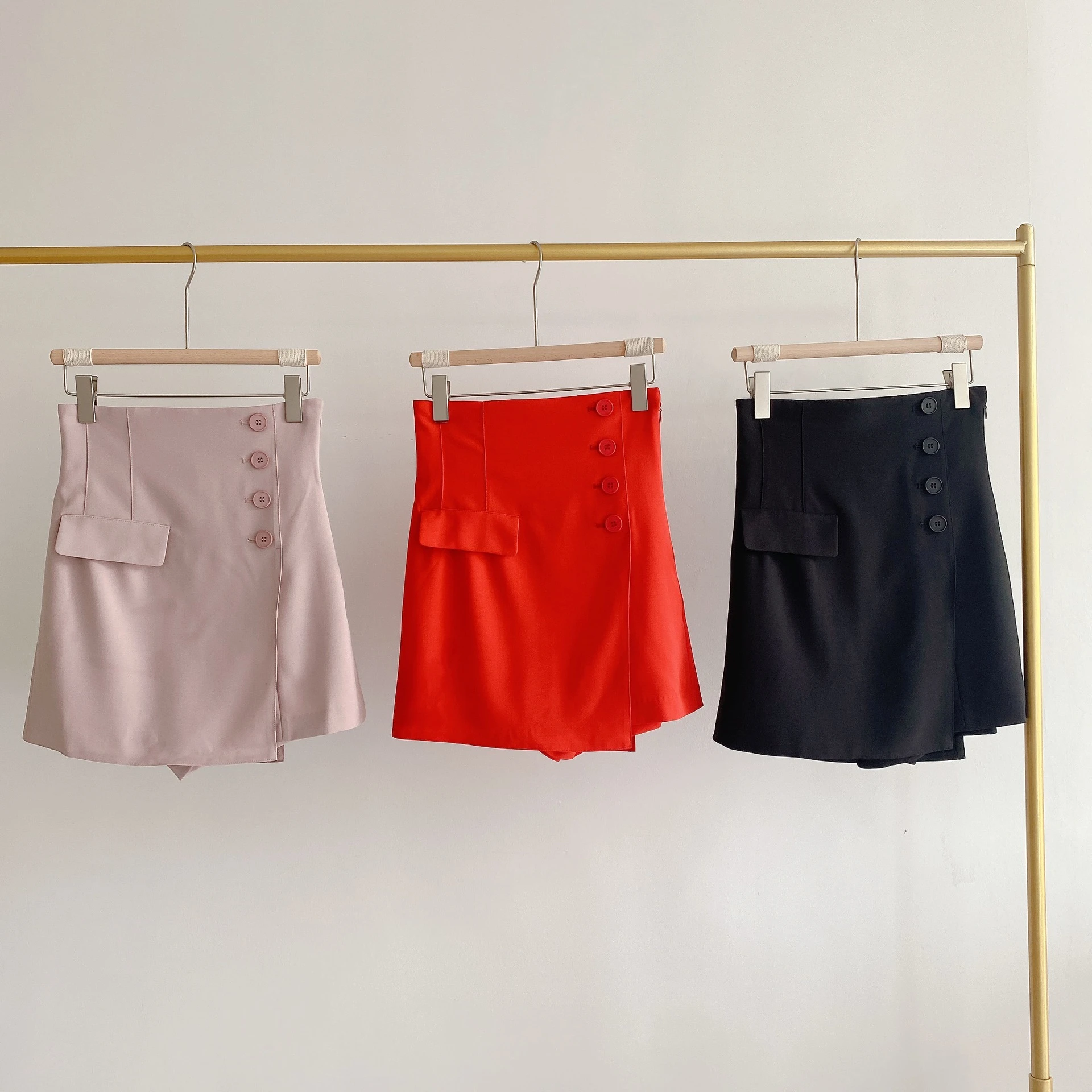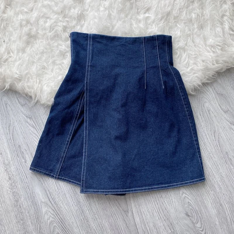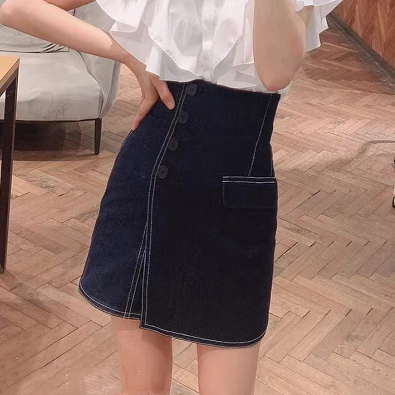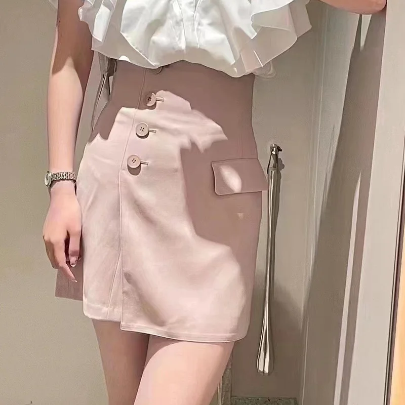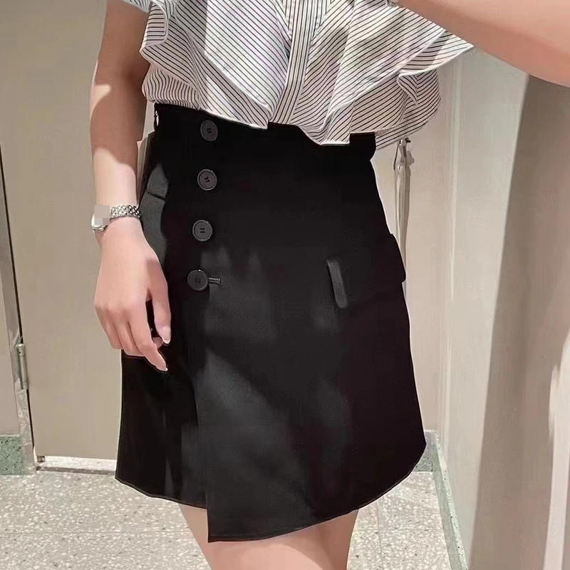 Kuzuwata 2023 Summer New Mujer Faldas Japanese High Waist Slim Jupes Irregular Button Solid Color Skirt Patchwork Culottes