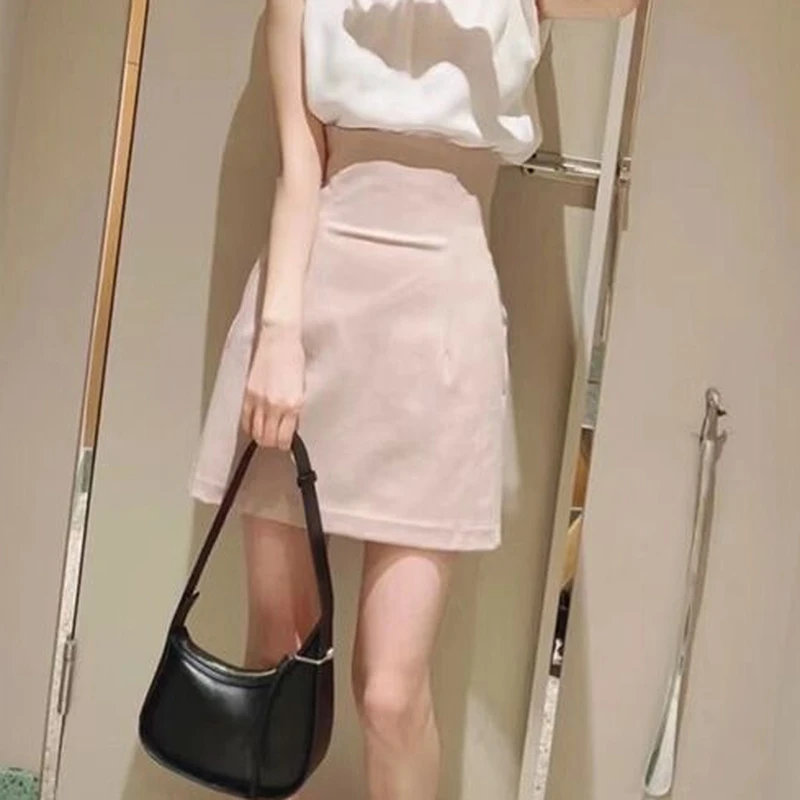 Kuzuwata Solid Empire Slim Folds Above Knee Sexy Mini Skirts Summer Womens Faldas 2023 New Fashion Temperament Japan Style Jupe