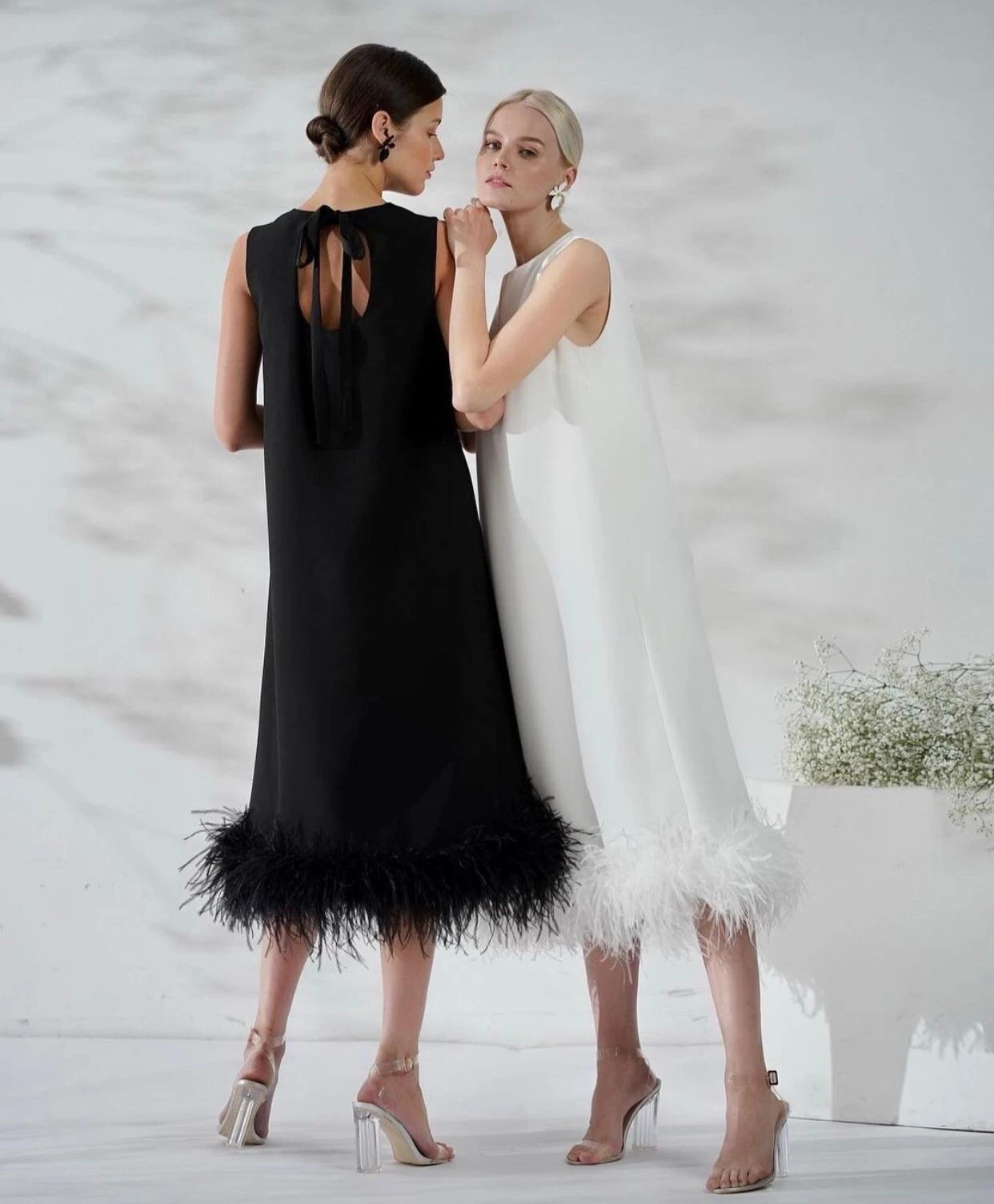 LORIE 2021 Saudi Arabia Black Prom Dresses O Neck Hollow Back adjustable Bow Satin Feather Tea Length Straight Evening Gowns
