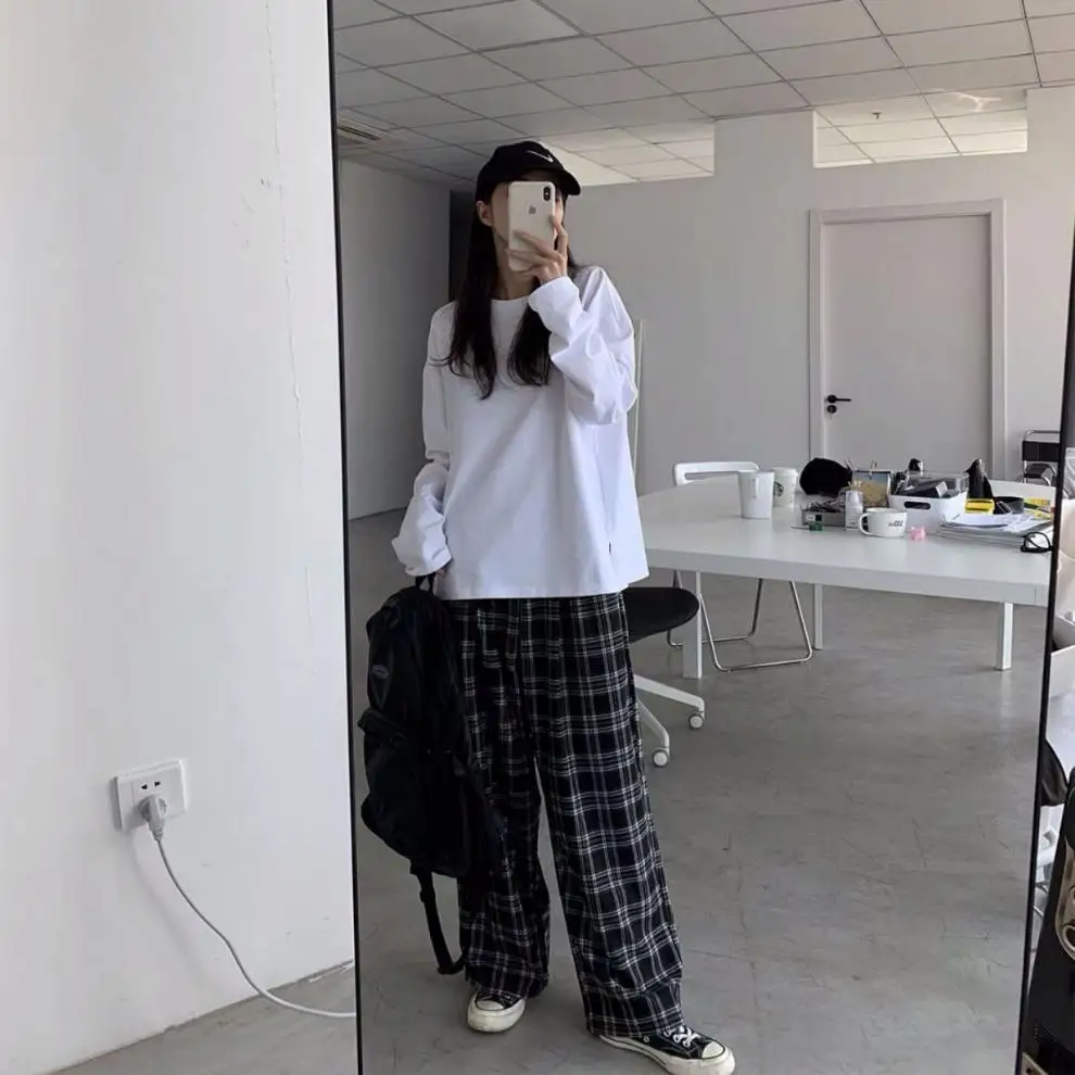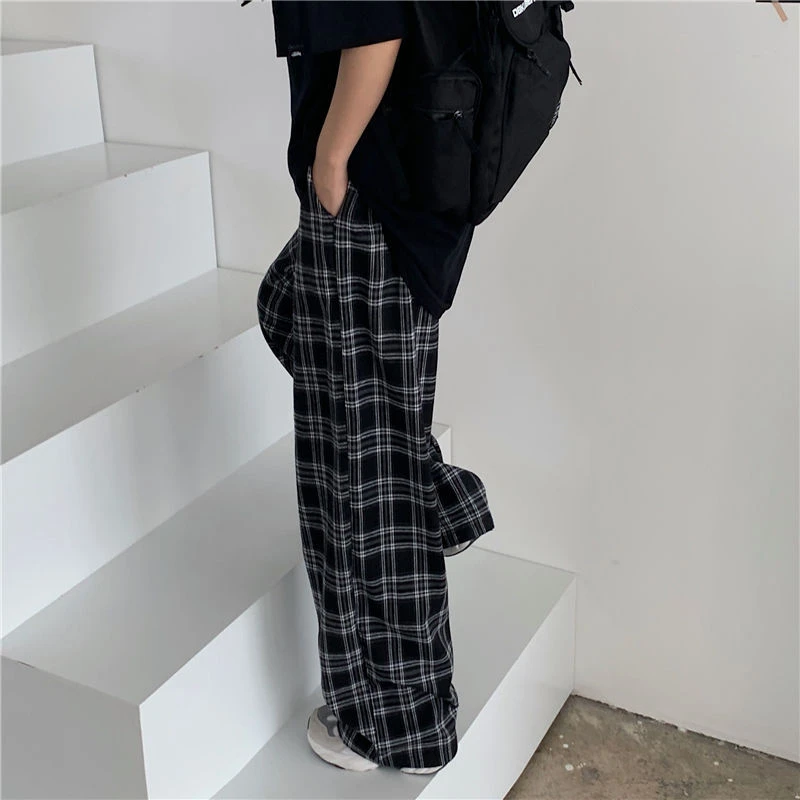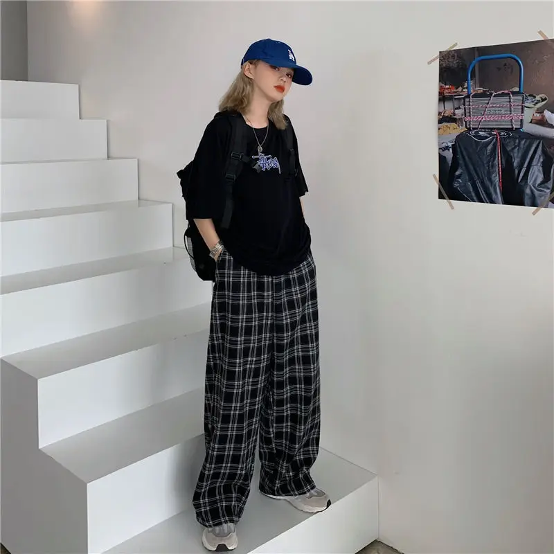 Oversize 3XL Plaid Pants Women Casual Loose Wide Leg Trousers Ins Retro Teens Straight Trousers Hip-hop Unisex Streetwear
