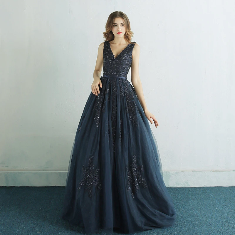 plus size new arrival elegant sleeveless Evening Dresses Moroccan Kaftan Formal party prom vestidos de fiesta de noche navy blue