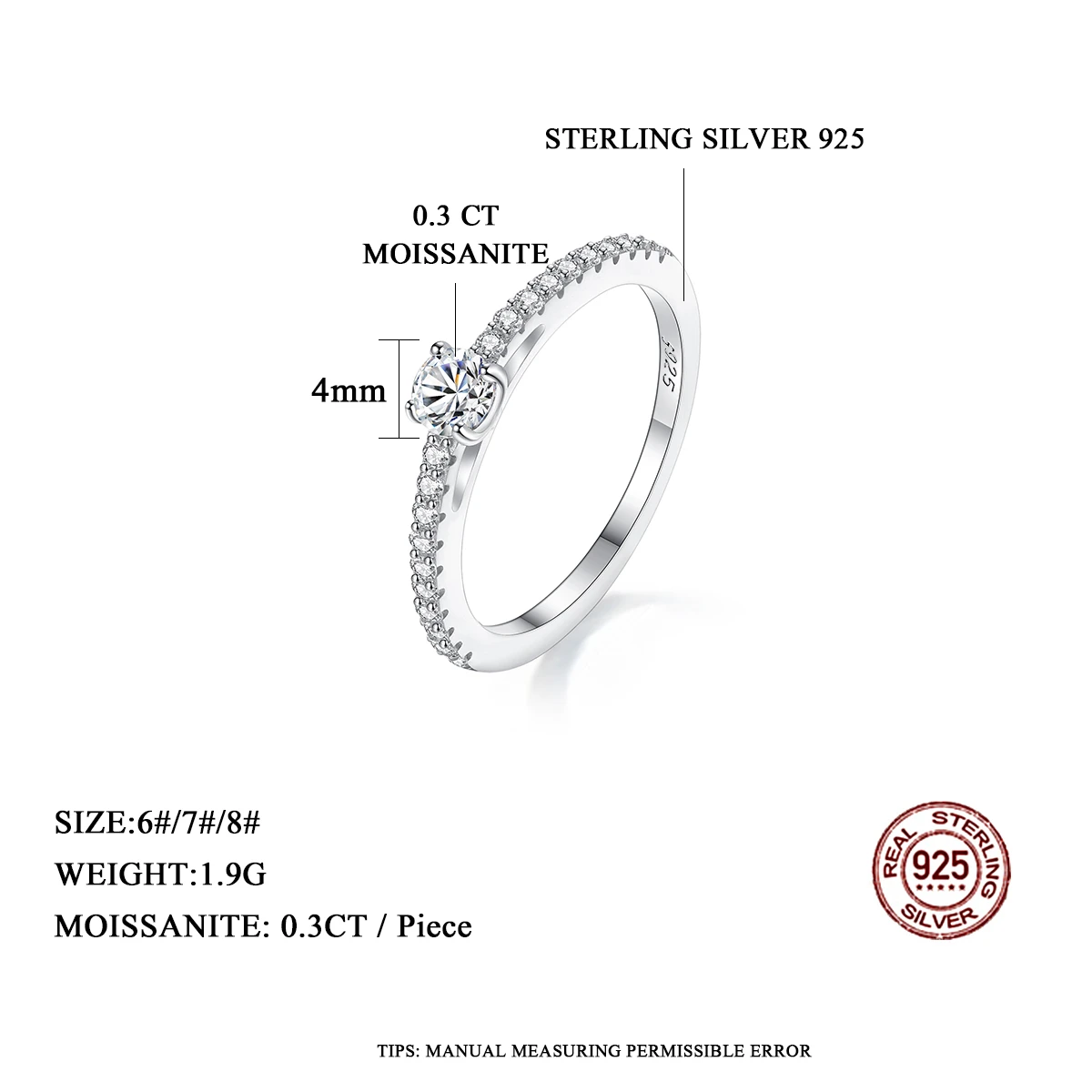 Real 925 Sterling Silver Small Moissnaite Ring For Women Simple Sparkling Round 0.3CT Certificated Lab Diamond Finger Rings