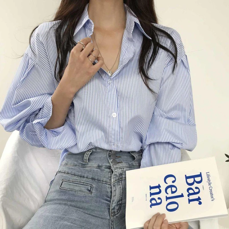 Shirts Women Striped Simple Spring Tender Female Temperament Retro Ulzzang Stylish Classic Office Lady Basic Popular Long Sleeve