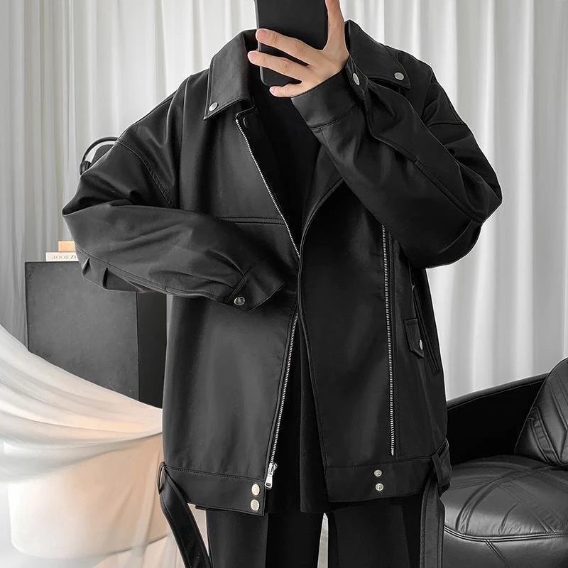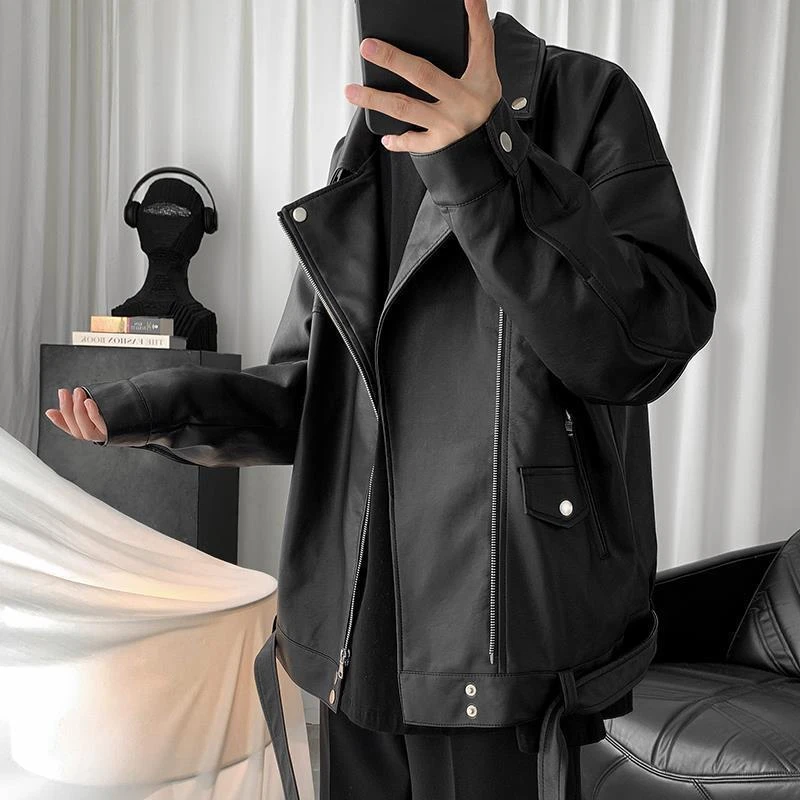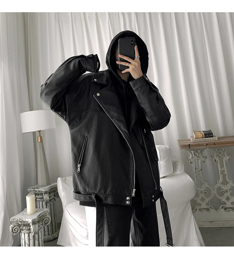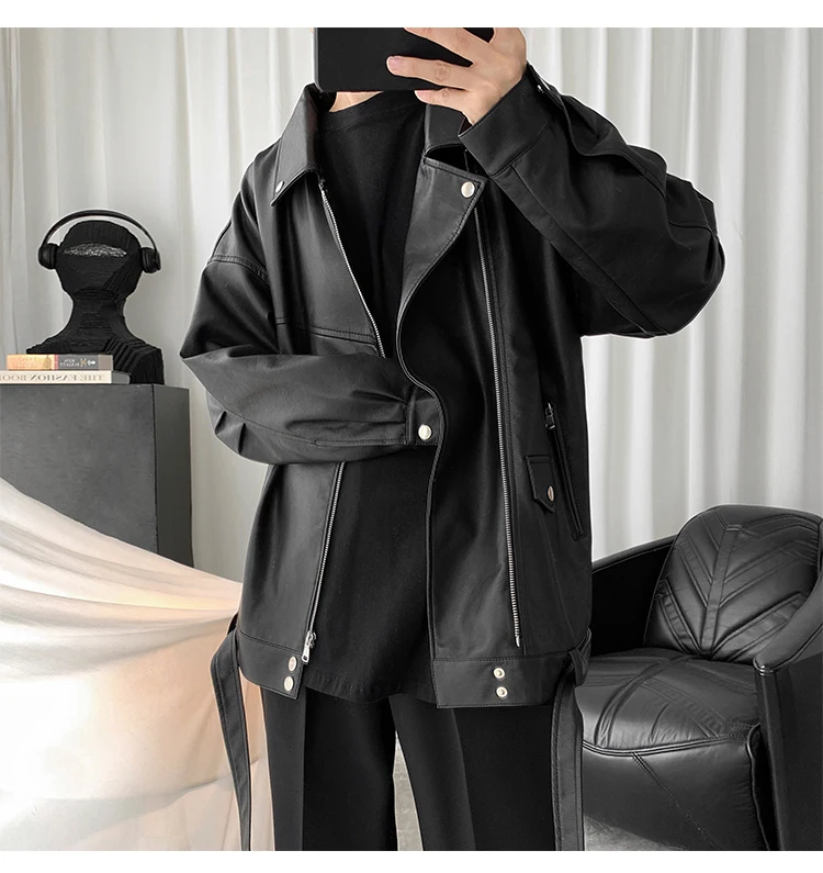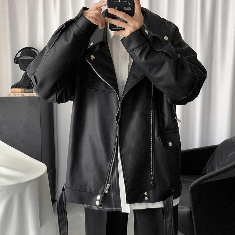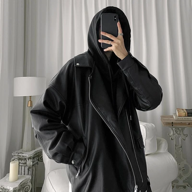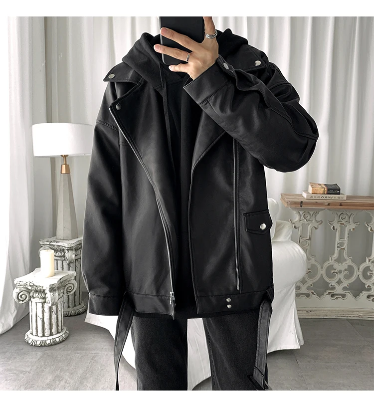 Spring Black Oversized Leather Biker Jacket Men Casual Loose Korean Fashion 2022 Faux leather Jackets for Men Brand