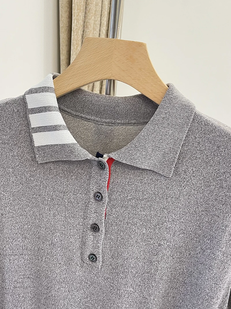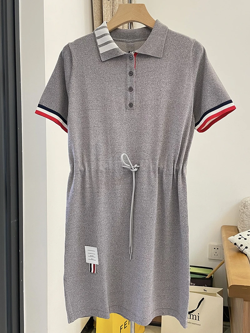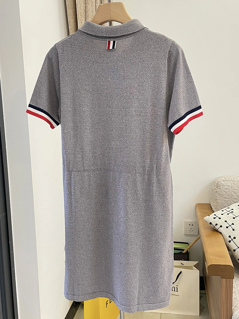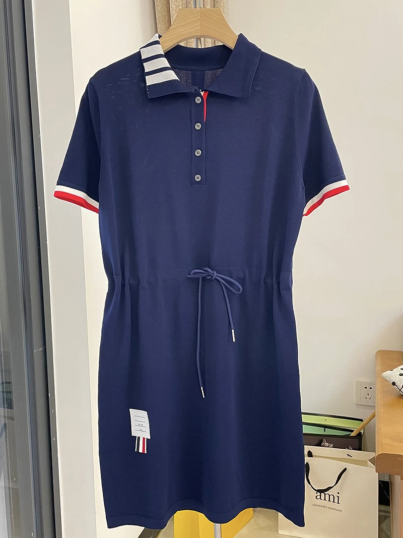 TB four-bar knitted dress ice silk lapel short-sleeved skirt high-quality mid-length skirt summer POLO collar summer