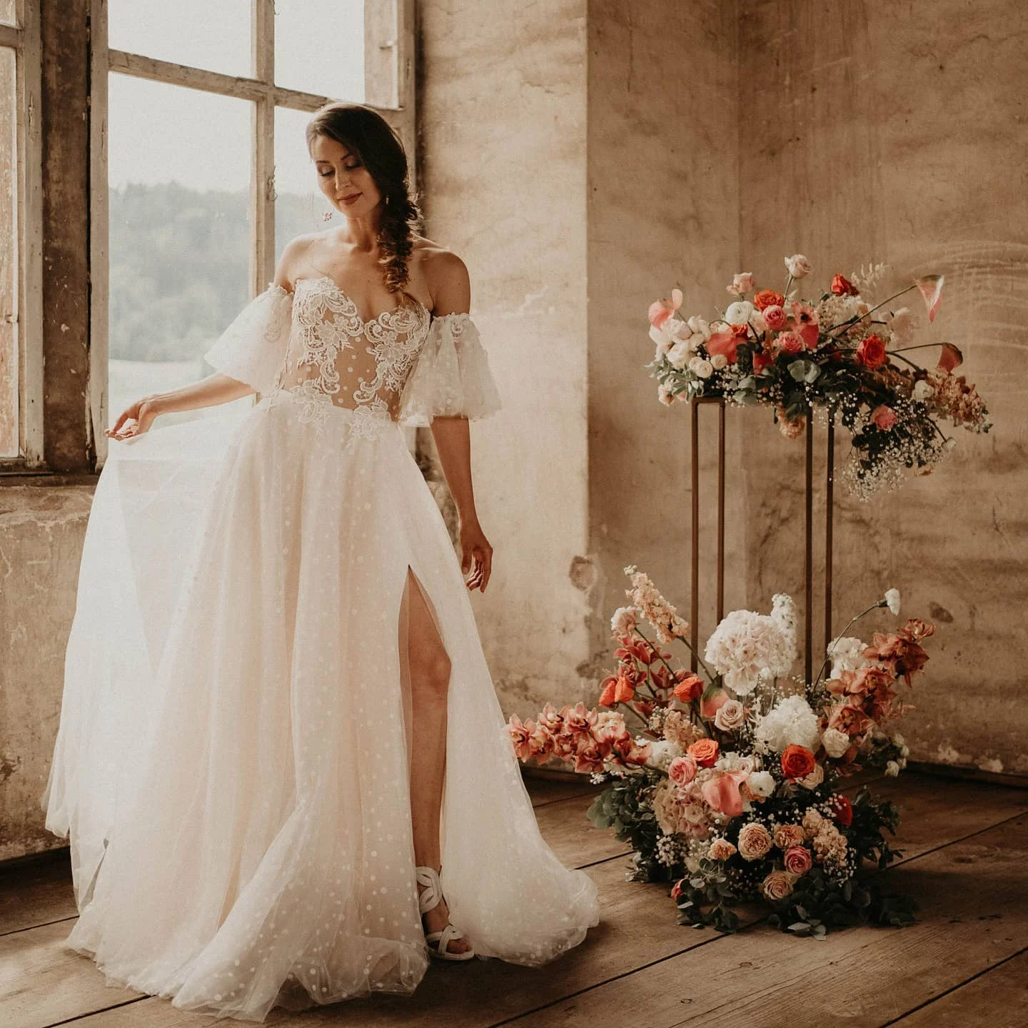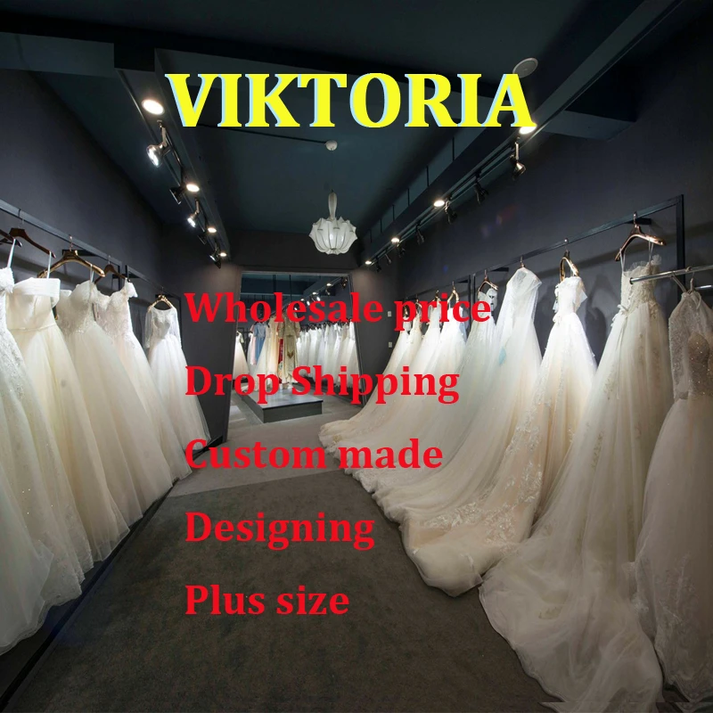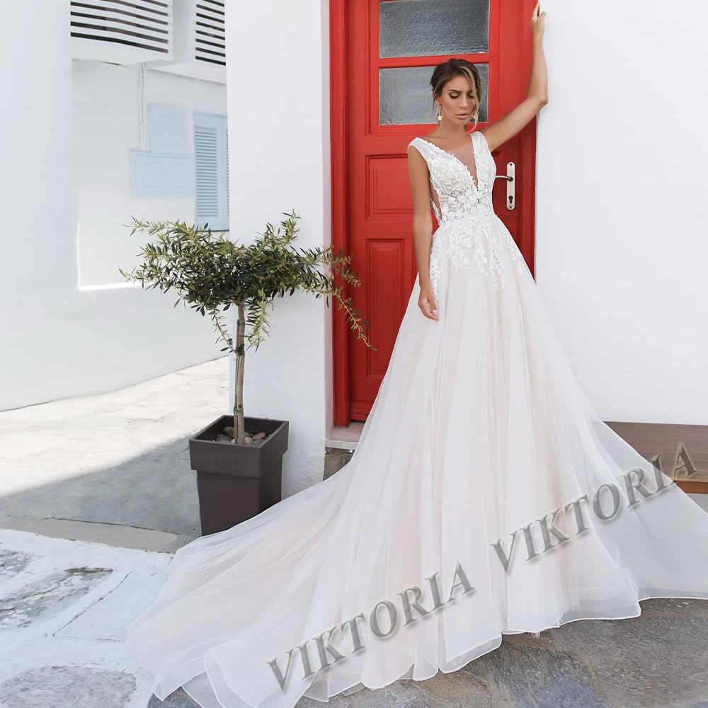 VIKTORIA Fashion Aline Wedding Dresses V-neck Custom-Made Court Train Appliques Sleeveless Robe De Mariée Engagement Plus