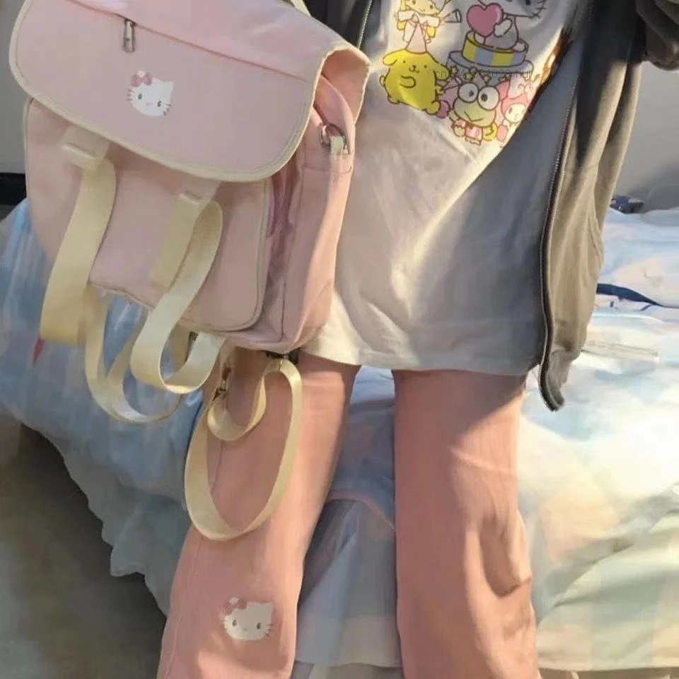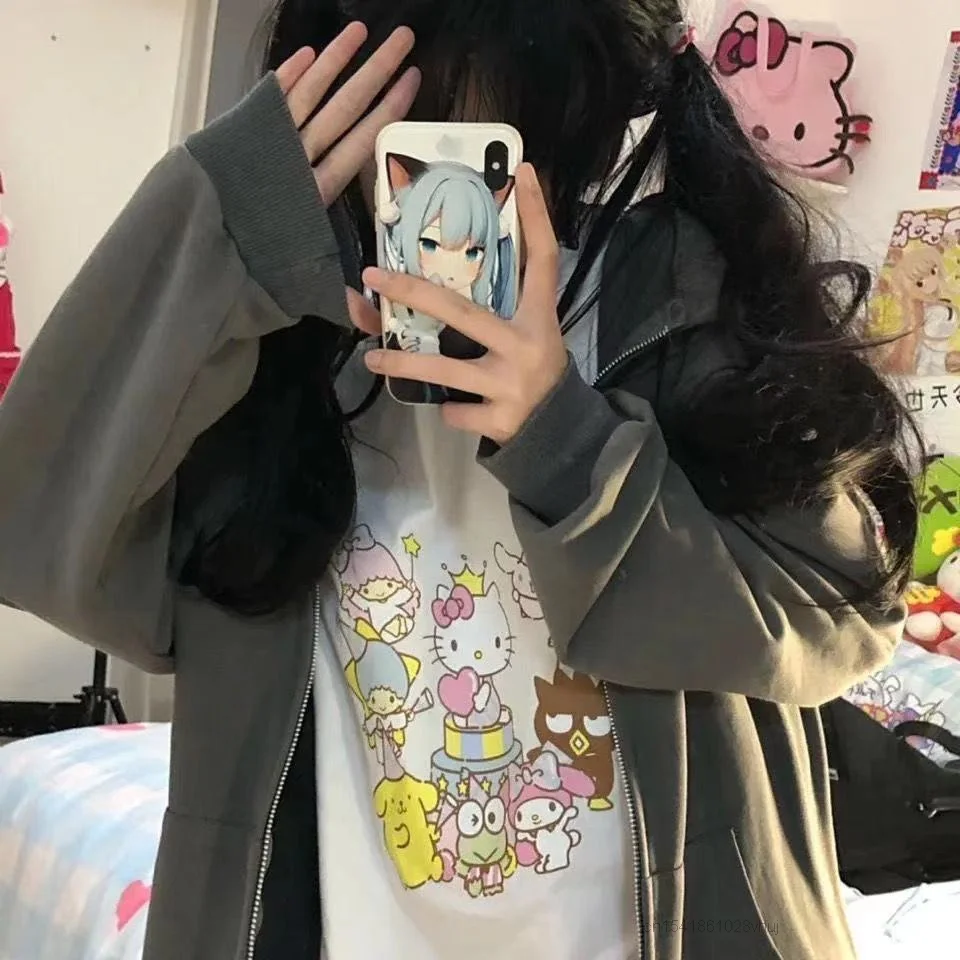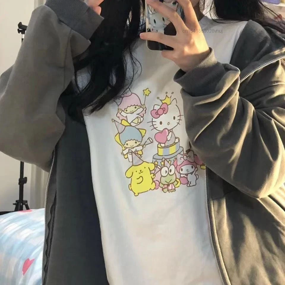 Y2k Short Sleeve Sanrioed Kittyed Cat Melodyed Cinnamorolled T-shirt Female Summer Cartoon Printed Korean Student Loose Tops Za